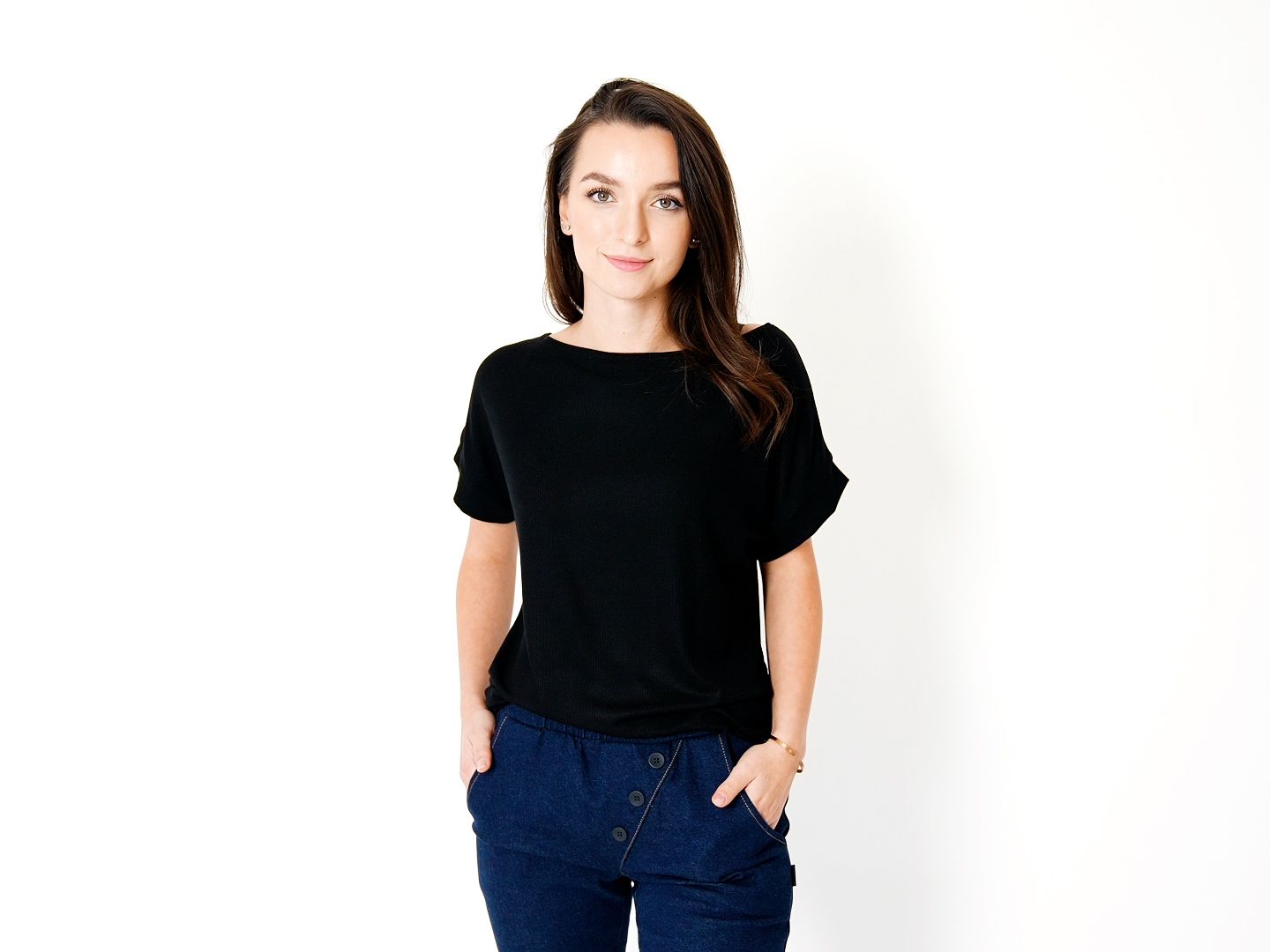 Svým střihem vychází Torrin z oblíbeného trička Ima – obě jsou delší, příjemně volná a dole dokulata střižená a vybavená neodolatelným lodičkovým výstřihem, prostě přesně tak, jak to máte rády. Ušili jsme ho ale z příjemné hebké viskózy s troškou elastanu s jemným vroubkem, což mu přidává na eleganci. Upravili jsme mu taky lem rukávu, díky čemuž si říká o pohledy ještě víc.