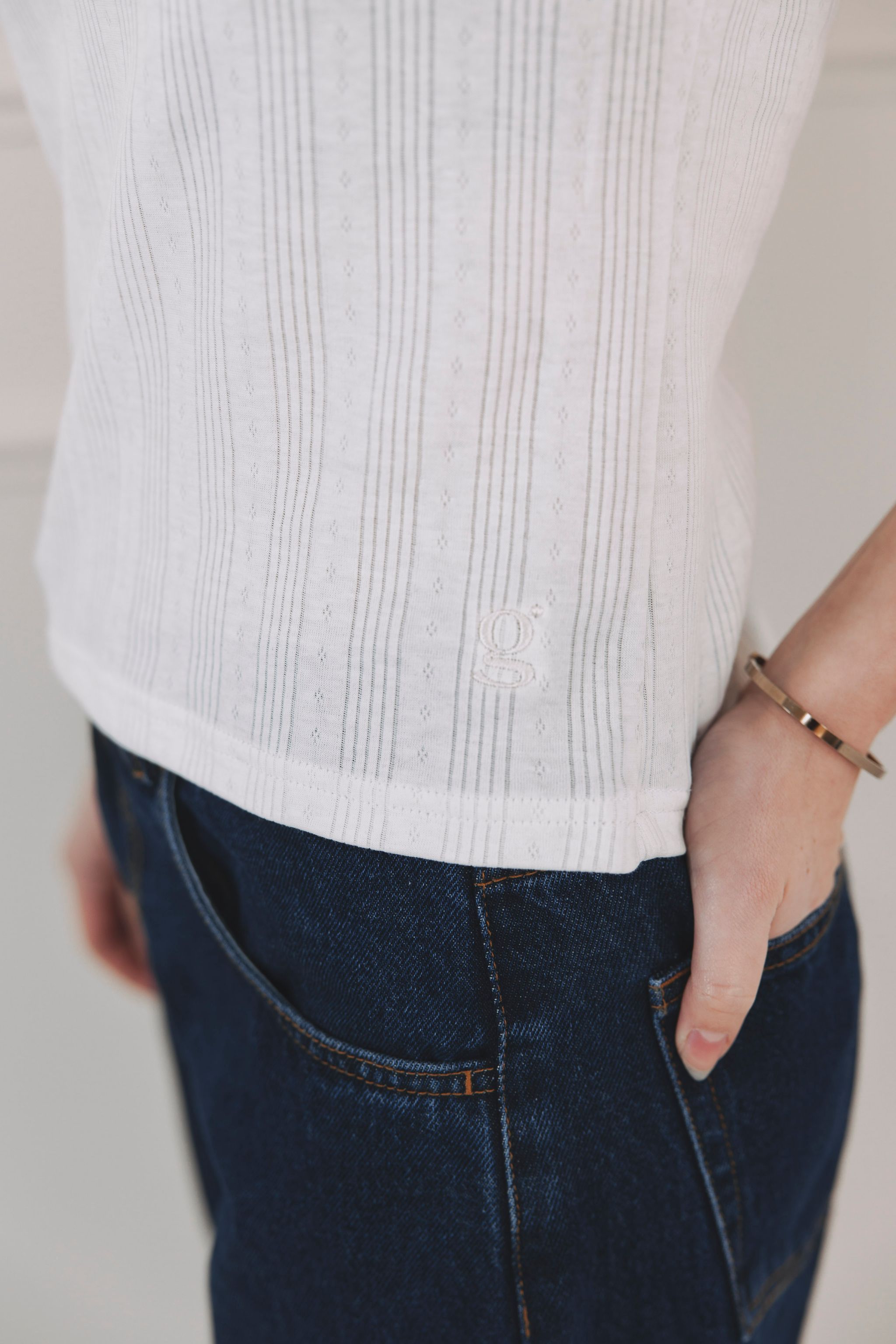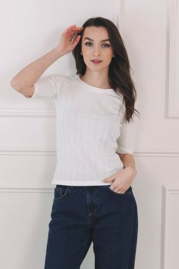 Nemějte obavy. I když je pletenina díky geometrickému vzoru jemnější na pohled, bavlna si drží svou pevnost, takže i po celodenním nošení bude vypadat stejně skvěle jako ráno po obléknutí.