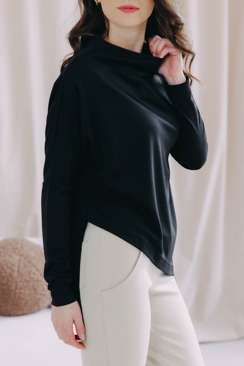 Jednoduché černé tričko Yeshi má všechno, co od takové univerzální klasiky s dlouhými rukávy chceme, a ještě pár detailů k tomu.