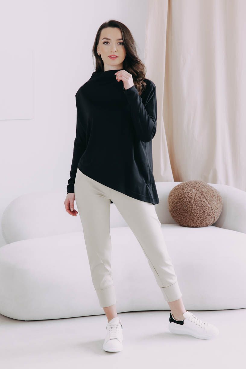 Stojáčkem možná trošku připomene svetr Izis. Yeshi ho má o něco nižší, přesto k sebe poutá pozornost jako magnet. Spadlé dlouhé rukávy s elegantními náplety na koncích doplní skvěle černé kalhoty Silko, vaše oblíbené džínové Reecky, ale třeba i trendy dlouhou vestičku. A ten šikmý lem?