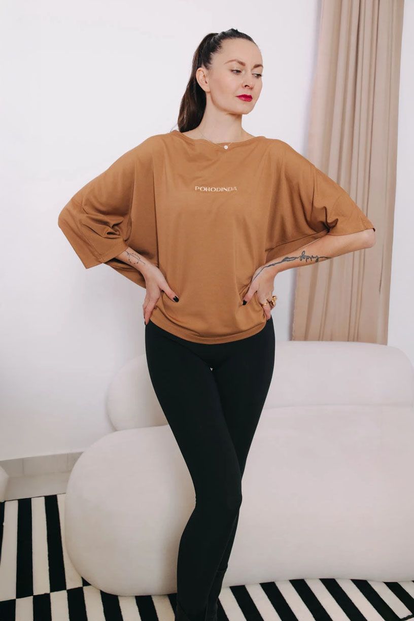 Světle hnědé tričko Yoko s výšivkou „pohodinda” řekne vše. Kdyby si snad někdo myslel něco jiného…
