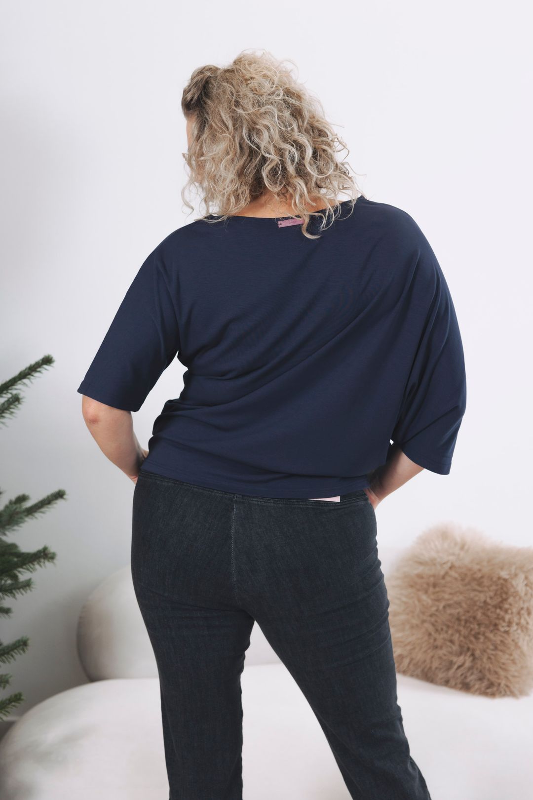 - Střih: Tričko Yoko se pyšní asymetrickým střihem a volnějšími netopýřími rukávy. Skvěle sedí každému typu postavy, ať už typu hruška, přesýpací hodiny, jablíčko nebo trojúhelník.
