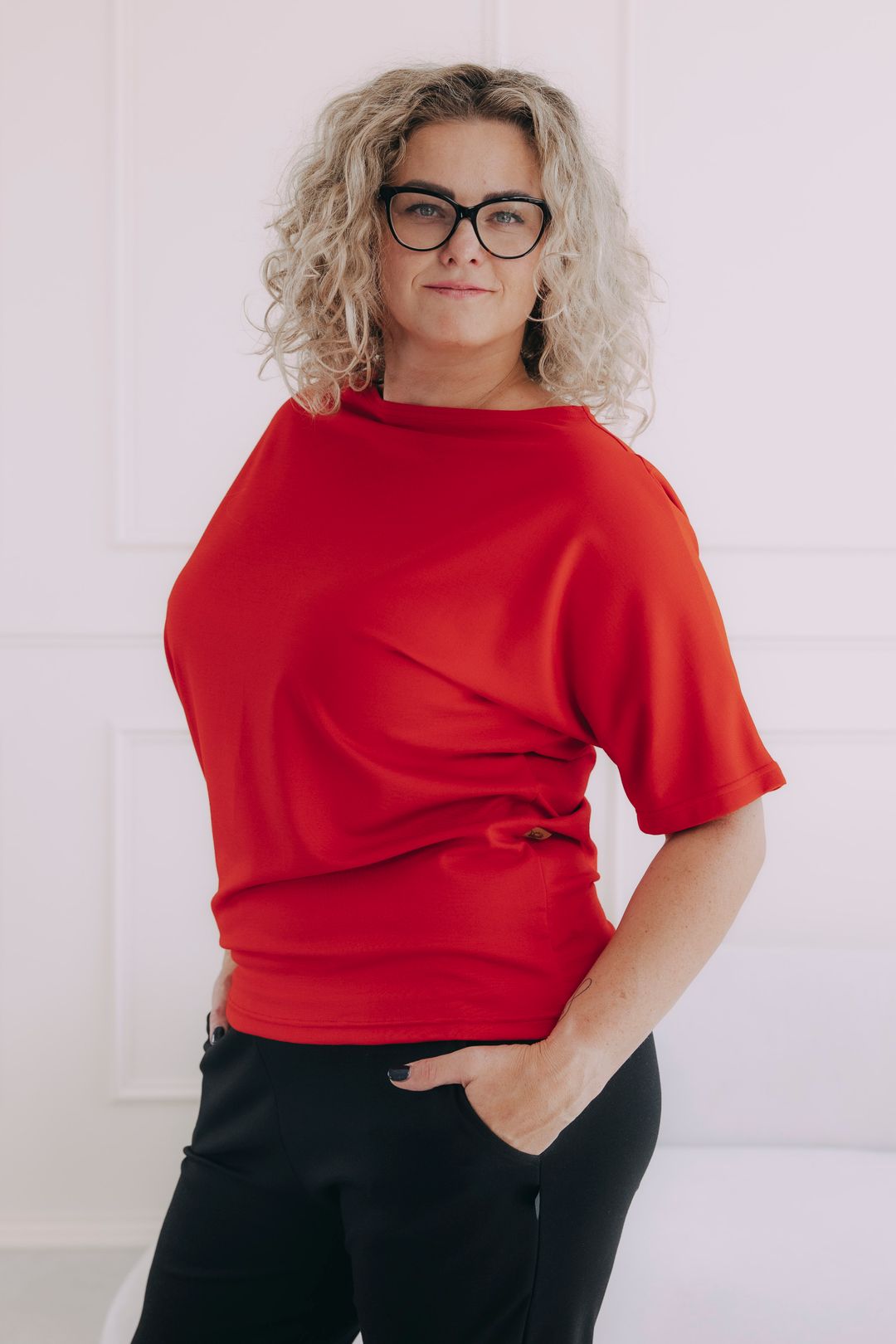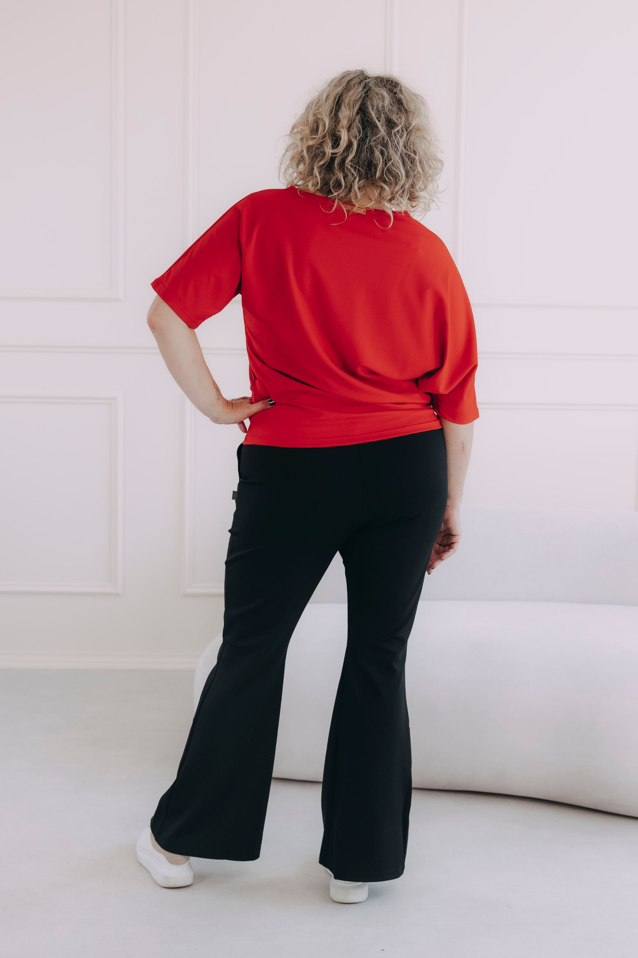 Některé kousky jsou tak rafinovaně ženské, že se prostě nedají nemilovat. Naše asymetrické tričko Yoko s lodičkovým výstřihem a netopýřími rukávy patří stoprocentně mezi ně. Díky svému originálnímu a lichotivému střihu chytře zakryje případné nedostatky a přitom podtrhne vaši krásu. Stane se tak nejoblíbenějším prvkem vašeho šatníku a ztělesněním ležérní elegance, kterou si zamilujete pro každodenní nošení.