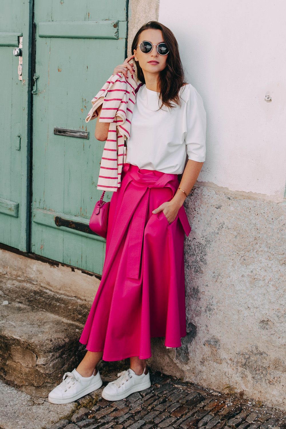 Vyzkoušejte tričko Yoko s naší sukní Mawe a teniskami. Tento outfit je perfektní pro každodenní nošení i setkání s přáteli a ukazuje, jak skvěle k sobě tyto Bugácké stálice pasují.