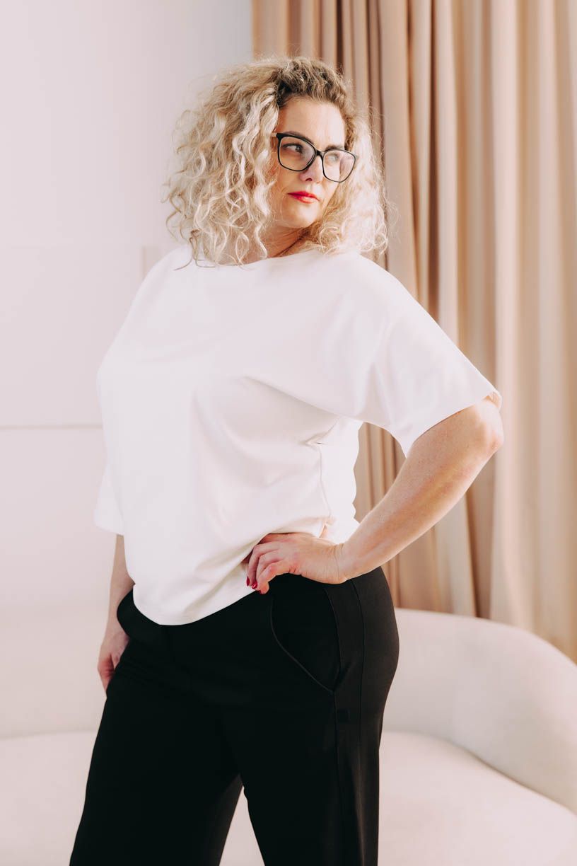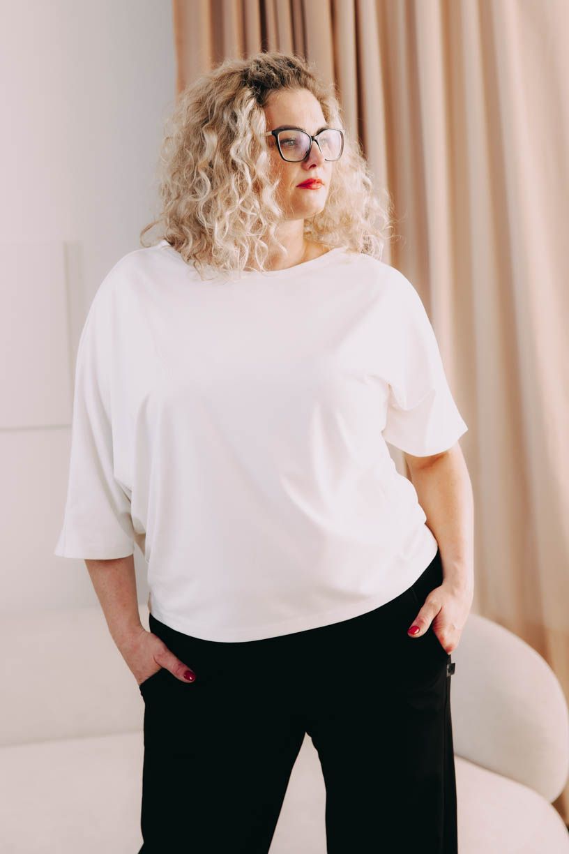 Některé kousky jsou tak rafinovaně ženské, že se prostě nedají nemilovat. Naše asymetrické tričko Yoko s lodičkovým výstřihem a netopýřími rukávy patří stoprocentně mezi ně. Střih trička jste si mimořádně oblíbily, a proto nepřestáváme kouzlit s různými barvami a materiály, ze kterých ho šijeme.