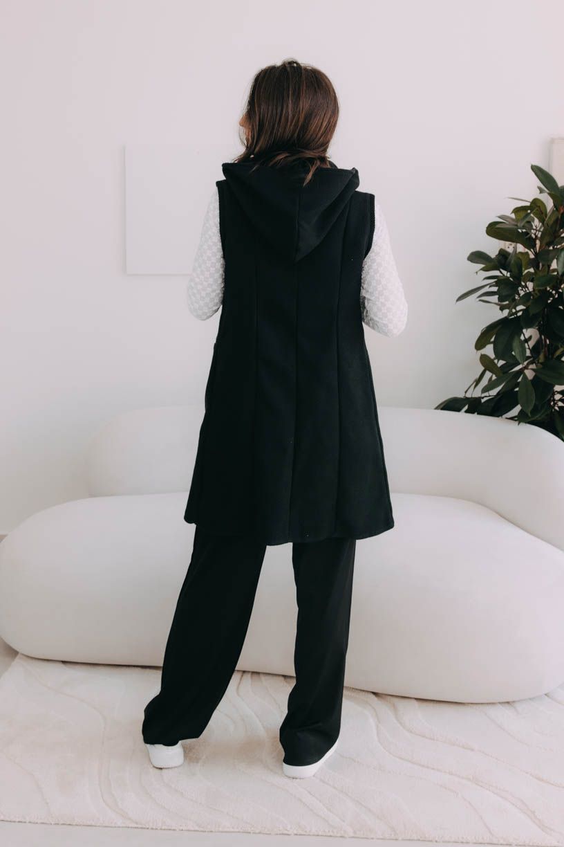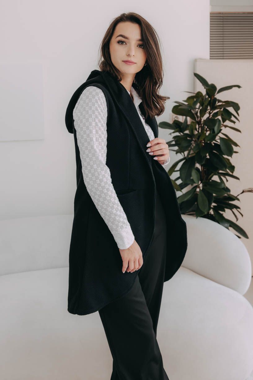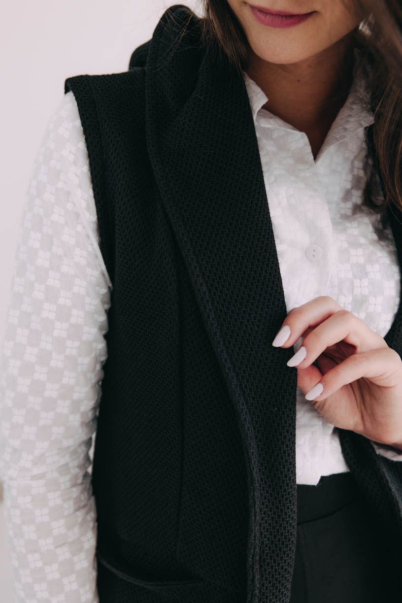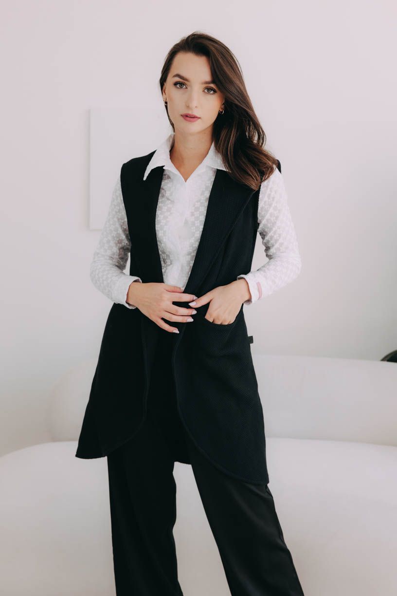 Plynulé linie vesty jsou zároveň ženské a černá barva zkombinovatelná prakticky s čímkoliv. Přehoďte si ji přes top ke kalhotám nebo kouzlete s rolákem a sukní. Otěže kreativity a kombinování jsou ve vašich rukou.