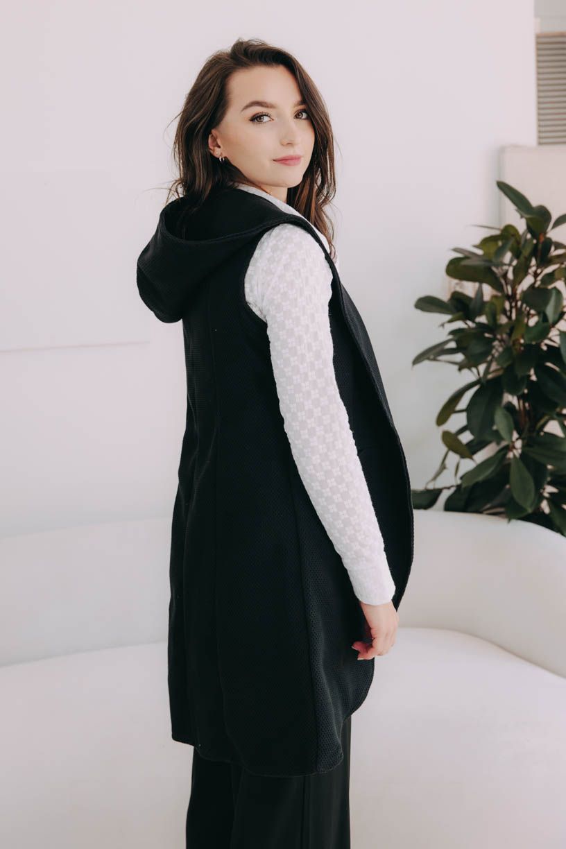 Nekompromisně stylová bavlněná vesta Layla s kapucí okamžitě přitáhne pozornost v jakémkoli outfitu.