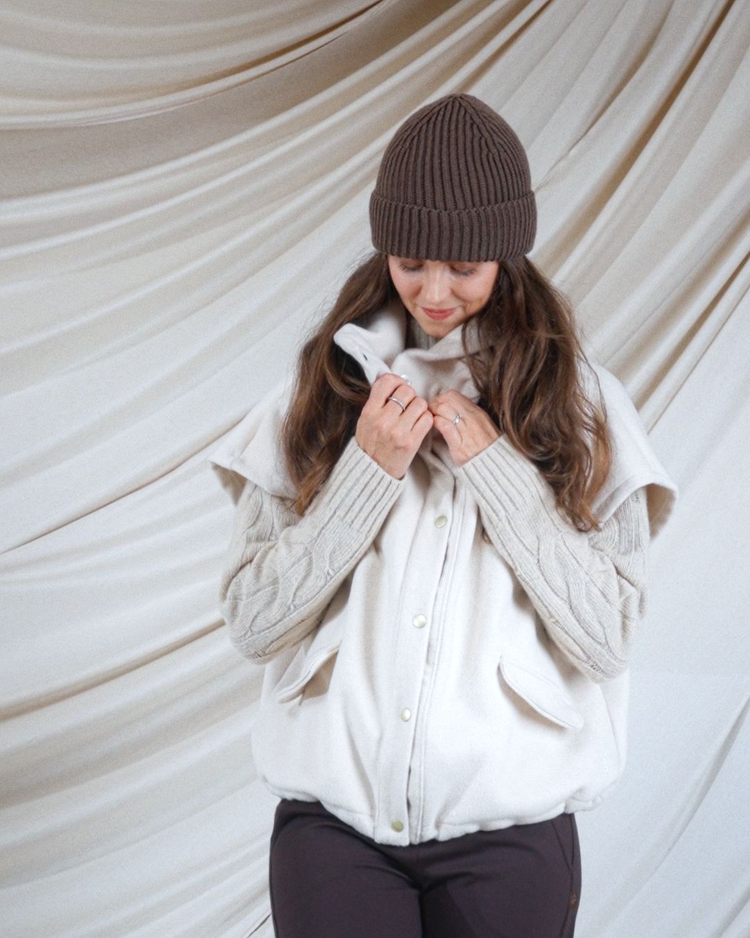 Rabiu je ideální oversize vesta pro kreativní vrstvení. Je to střední vrstva i svrchní kousek v jednom – dokonale přizpůsobivá vašemu stylu i počasí.